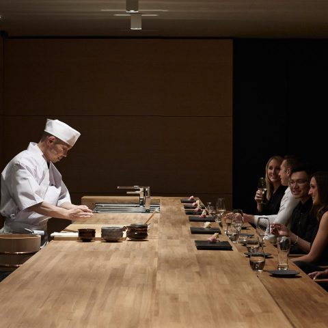 Local ingredients arrive daily from boutique farmers and visits to seafood markets. Chef Minamishima not only showcases the best of Australia, but also that of Japan, seasonally importing fresh seafood from Tokyo’s Tsukiji Market such as toro, kinki and sea eel, as well as shellfish like bafun uni from an island near Hokkaido and geoduck and Japanese cockle from his home in Aichi. Each piece of sushi is created so that the inherent characteristics of the key ingredient shine.
