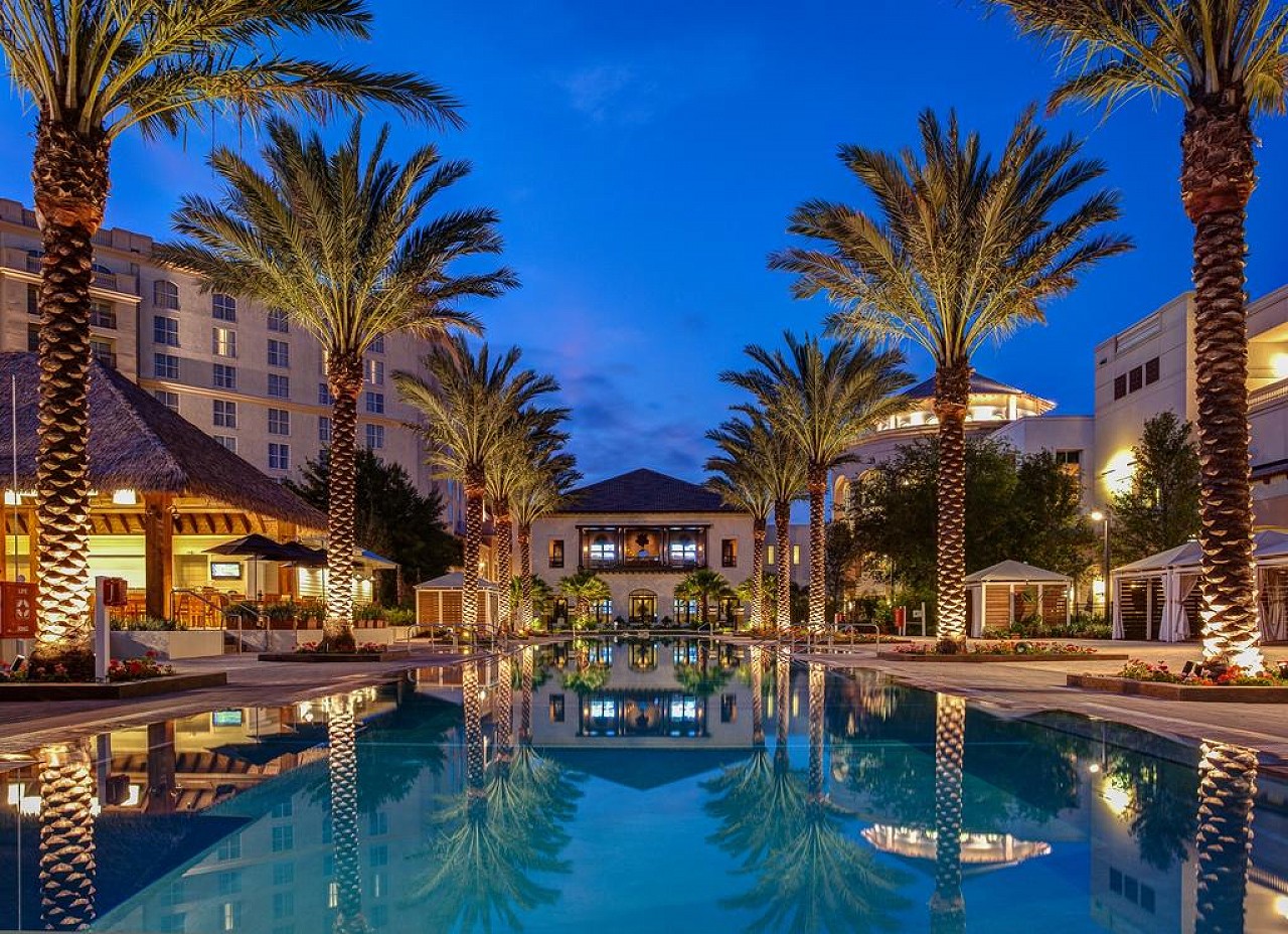 Uncover a one-of-a-kind enchanted surrounding at Gaylord Palms Resort & Convention Center. Our upscale resort in Kissimmee, Florida features a premier location just minutes from Walt Disney World® and Universal Orlando Resort™. Whether you're traveling for work or play, you'll love the convenience of having everything in one place. Start your stay in our soaring glass atrium showcasing the landscape of the Everglades, the cobblestone streets and rich history of St. Augustine, and the picturesque scenery and vibrant colors of Key West. Enjoy a day with your children at our water park, or savor some time to yourself at our adult-only pool. We also offer a full-service spa, perfect for pursuing a pampering session. Continue the fun as you delight your taste buds with the finest cuisine from any of our nine restaurants. When it's time to get back to business, inspire new ideas across 400,000 square-feet of impressive meeting space. Unfold extraordinary moments at Gaylord Palms Resort & Convention Center.