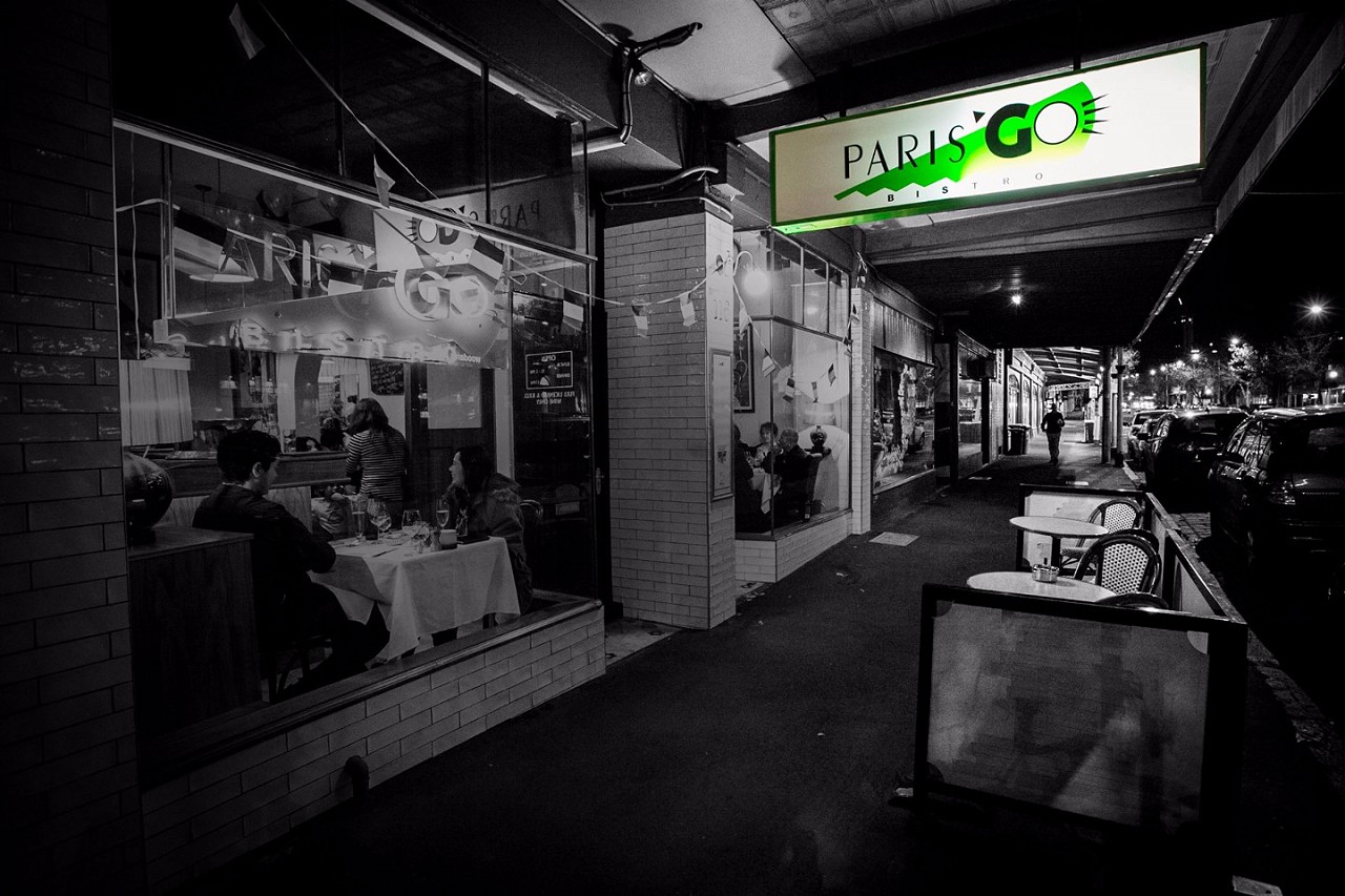 A lively Carlton bistro and veritable institution, you'll find Paris Go constantly full with couples and celebrating families enjoying the flavours of France in style. Housed in an elegant Victorian terrace, this charming bistro is the perfect place to get acquainted with the classics of French cuisine, paired to an impressive European wine-list. Paris Go, housed in an elegant Victorian building, is an endearing mix of Carlton cool blended with the flavours of France. The dining room is coated in a lively yellow with huge posters of France and a splendid mirror that gives the illusion of space while also providing a spot to gauge just how stylishly ruffled ones hair is. The high, pressed metal ceilings are painted an attractive shade of green and the tables are decked out in white linen with paper overlays to create an appealing, yet simple, space in which to enjoy the menu.