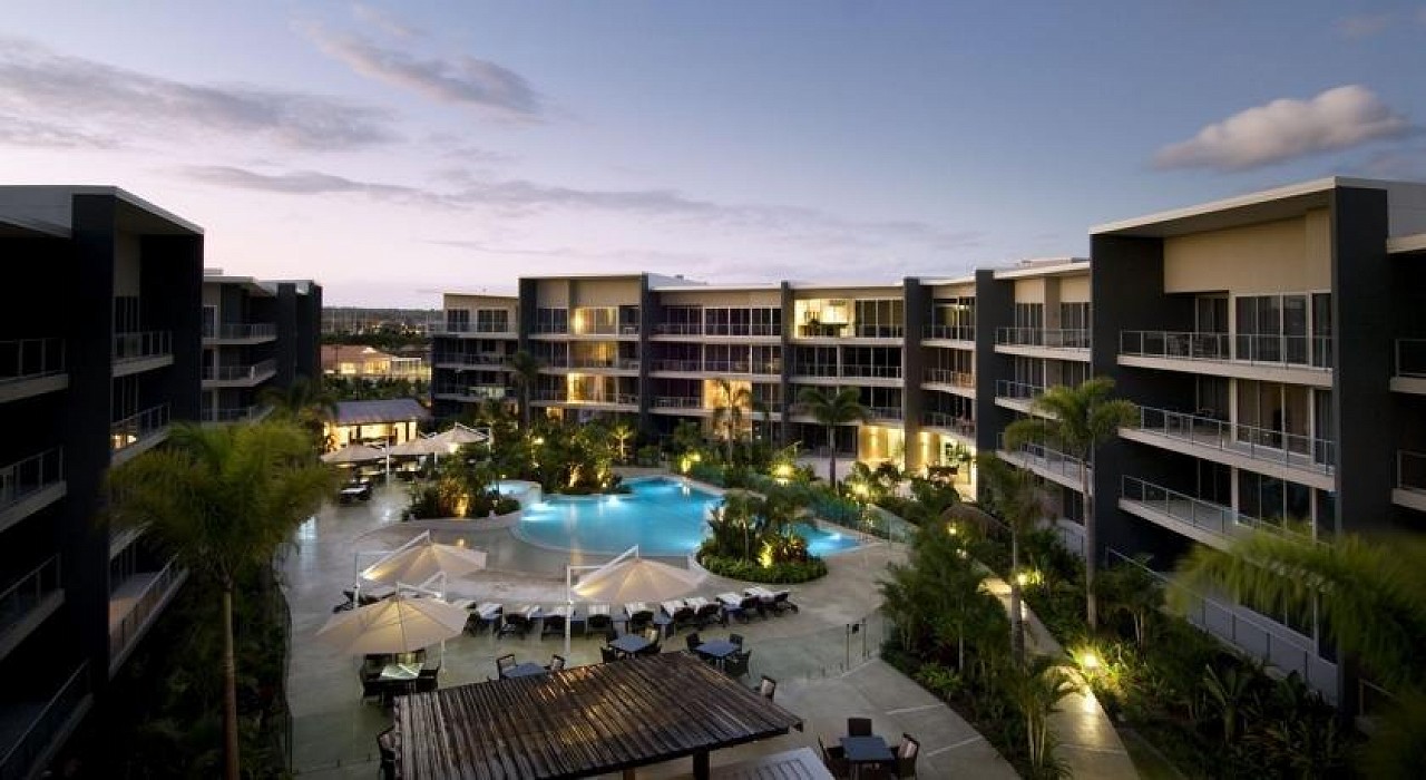 Azzura Greens Resort is located on Queenslands Gold Coast within the largest theme park / entertainment precinct in the southern hemisphere. The resort is only 5 - 10 minutes from all the thrills, entertainment and family fun of Dreamworld, WhiteWater World, Movie World, Wet & Wild, Paradise Country and the Australian Outback Spectacular and 20 minutes from Sea World. This architecturally designed low rise resort comprises of 159 luxury one, two and three bedroom apartments. Azzura Greens Resort is located in the prestigious Hope Island Resort Community and is your perfect luxury getaway surrounded by worlds of entertainment. Lush tropical gardens surround the resort at the heart of the resort there is he crystal waters of a lagoon pool with a man made sandy beach.