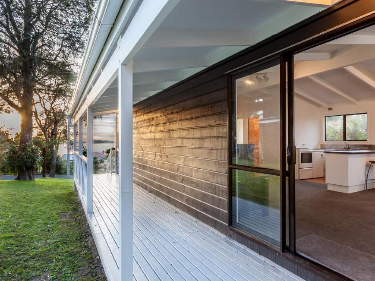 This property is 6 minutes walk from the beach. Nestled amongst trees between French Bay and Paturoa Bay, Auckland Clifftop boasts stunning water views. This 2-bedroom house features a terrace and an outdoor dining area, where you take in the scenic surroundings and the breathtaking seaviews and sunsets.