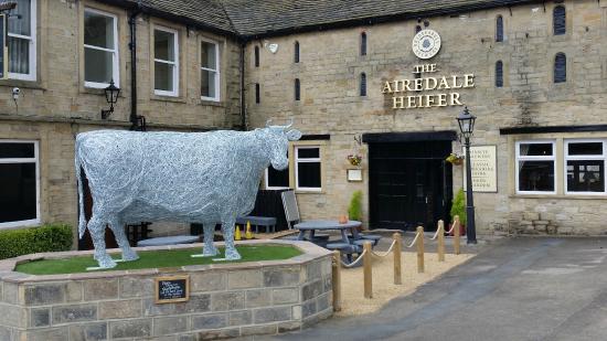 The Airedale Heifer is situated between Crossflatts and Riddlesden, in a little village called Sandbeds, you can't miss us, we have the now famous Airedale Heifer galvanised in all its glory sitting at the front of the pub and waiting to welcome you. The pub has a large beer garden which is maintained throughout the year, making it a gorgeous hotspot to enjoy some time in the sunshine. The pub comprises of a spacious bar area and also an open plan family friendly dining room. Our experienced award winning chefs work very hard ensure that all tastes are catered for on our broad menu selection, which is fresh, home cooked, and locally sourced. The bar area has a well stocked selection of alcoholic and non alcoholic beverages to suit all tastes, including our very own Bridgehouse Brewery Ales, which have become very popular with our locals.