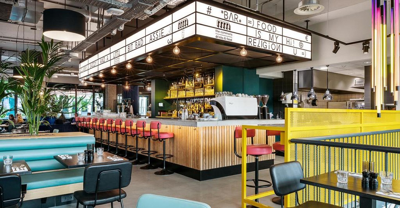 Located inside The Student Hotel, The Commons serves drinks, lunch, dinner and desserts. Smashed avocado sandwiches, pepperoni pizza, pulled pork burgers, sweet potato fries and New York cheesecake are just some of the things on the menu.