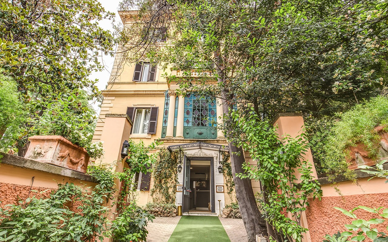 The Rome Garden Hotel welcomes you into its fascinating internal court: a little Eden in the heart of Rome that’s not at all off form in front of the splendid parks of the near Villa Borghese. Towered over by a wisteria, the garden surrounds and embraces the 19th century villa which houses the hotel: an architectural element strongly characterised which complements the spaces of the entire structure. The doors of a few private guest houses give onto the greening alleyways made precious by the various flower pots and details in cast iron, perfect for those who prioritise intimacy and tranquillity.
