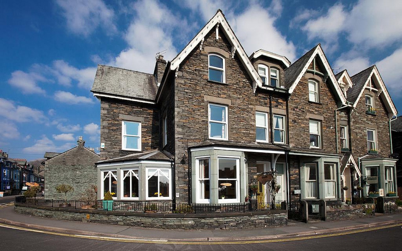 The guesthouse is located on Compston Road which is the main road through Ambleside linking the south and north Lakes areas. Outside Easedale Lodge, the road is one-way running in a northerly direction through the village. The Lodge has two car parks, one at the side of the house and one across the park. The windows overlook parkland to the front and have village, fell and mountain views from the front, side and rear.