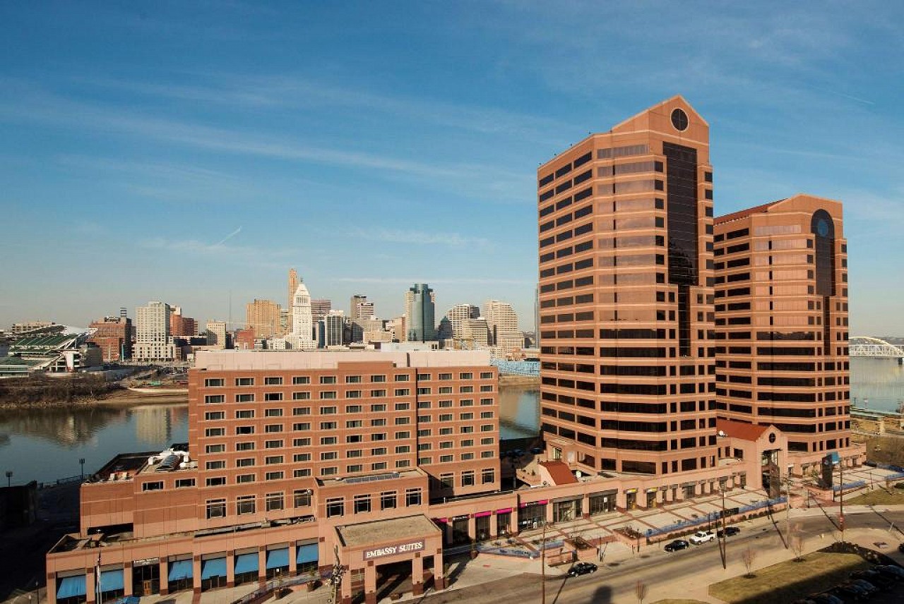 Across the road from the Ohio River, this informal all-suite hotel is next to the Northern Kentucky Convention Center and a mile from the Great American Ball Park.