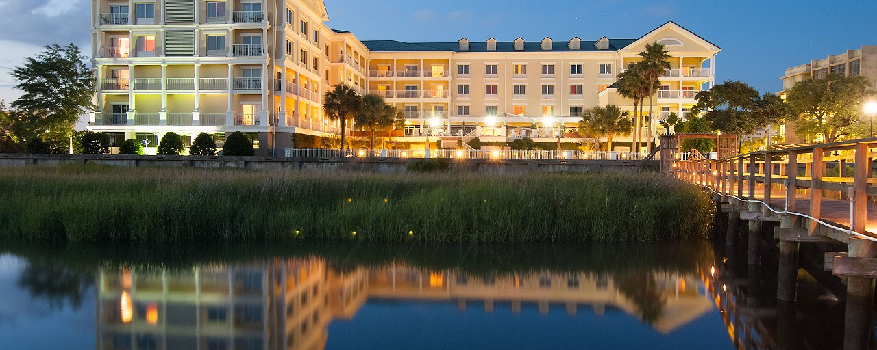 Experience luxury and southern hospitality at Courtyard Charleston Waterfront hotel, located minutes from the historic district of Charleston, SC. Unique among hotels in downtown Charleston, guests can experience stunning views of the Ashley River, unwinding on our beautiful terrace, swimming in the outdoor waterfront pool, relaxing by our fire pit or whirlpool, or resting in their spacious guest room. One of few waterfront hotels in Charleston, our hotel sits along the beautiful Ashley River and is a short drive from the city's top destinations including; the shopping on King St., downtown market, historic plantations, and military parks. Take our convenient hotel shuttle into the Historic District for a small fare. This unique Charleston hotel offers a 24/7 fitness center and a business center. Join us at The Bistro for a delicious breakfast or dinner. Experience style, convenience and great service at the newly renovated Courtyard Charleston Waterfront Hotel.