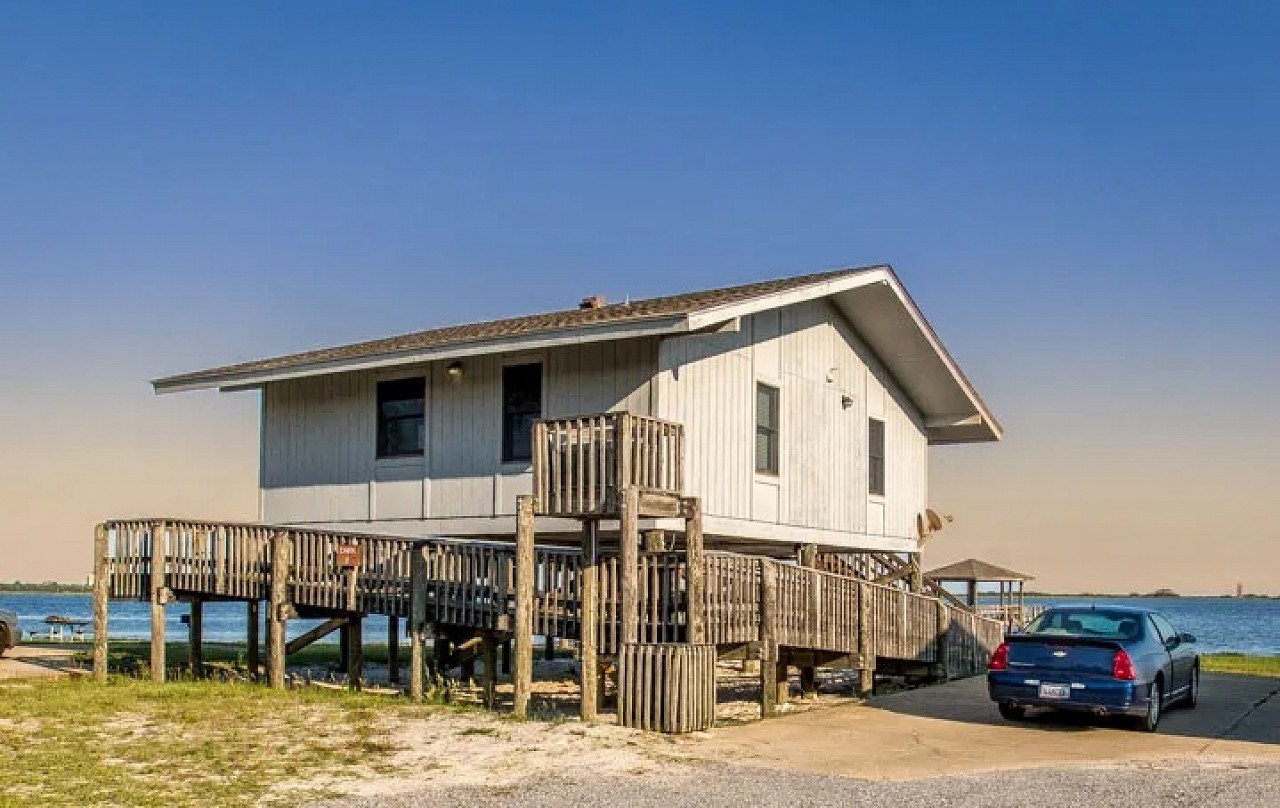 The spacious cabins sit on the north shore of Lake Shelby, near the park entrance. Built twelve feet above the ground in case of floods, most of the cabins have stairs; however some of the cabins were purpose-built to accommodate wheelchair-users and slow walkers. Cabin 8, which sleeps four people, is one of those cabins.