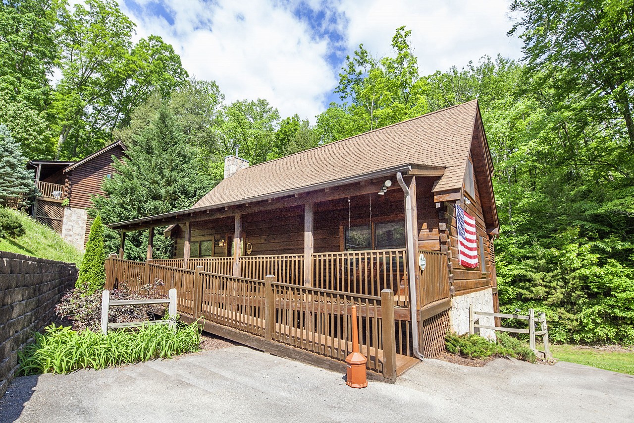 Eagles Ridge Resort Pigeon Forge Cabins offer you peace and quiet in a serene heavily wooded setting with flowers and foliage everywhere. Enjoy easy access to your cabin with few steep driveways and minimal stair steps to your front door. All this, only a mile from the Parkway in Pigeon Forge, TN and convenient to Gatlinburg. Eagles Ridge brings you close to the action, but far from the crowds.Our Pigeon Forge cabin rentals and chalet rentals offer all amenities including fireplace, whirlpool, hot tub, fully-equipped kitchen, and more. One to nine bedrooms are perfect for a honeymoon, family vacation or reunion, romantic getaway, church group, or corporate retreat. Our deluxe cabins and chalets are only a few minutes from the Great Smoky Mountains National Park!