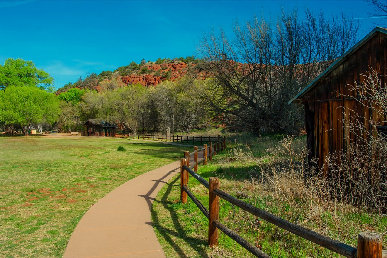 Camping Cabin Loop: 8 one-room log camping cabins are available at Dead Horse Ranch State Park. The cabin circle is tucked away from the other campgrounds for an ideal getaway for a weekend — or a week.