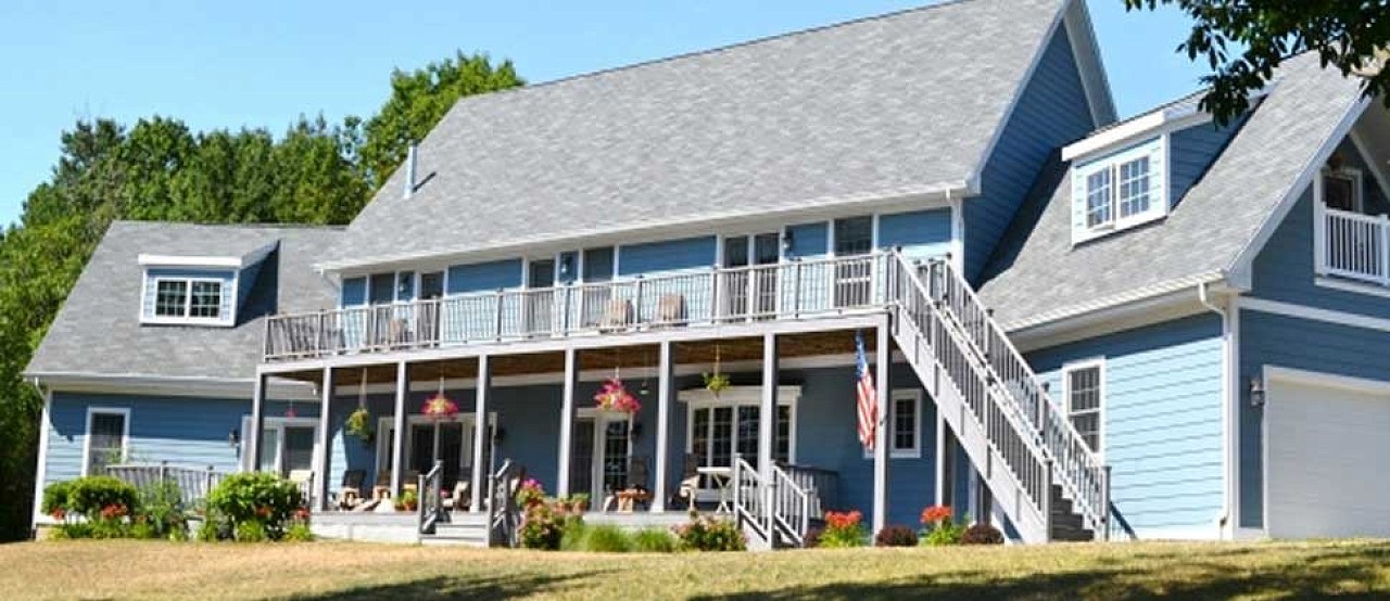 The Pearl of Seneca Lake Bed and Breakfast is located on the west side of Seneca Lake in the heart of New York State’s Finger Lakes region. It was purpose-built in 2005 as a bed and breakfast. It has four guest rooms, each with lake view, a private bath, satellite TV, Wi-Fi, a refrigerator stocked with water and soda, and a microwave with popcorn. Three of the rooms have private entrances from our lakeside decks, and the Southview Room has a private covered balcony. A spacious living room with a gas fireplace is provided for guest use, where guests often gather for socializing, watching TV and playing card and board games. The property is comprised of 13.7 acres, with 385-foot lake frontage. It includes an 80-foot dock with a canoe and rowboat for guest use. Overlooking the lake is a pavilion with a large picnic table, and nearby is a fire pit with wood provided for our guests. The property is secluded, and includes a 3000-foot nature trail to enjoy the birds, wildlife and natural surroundings.