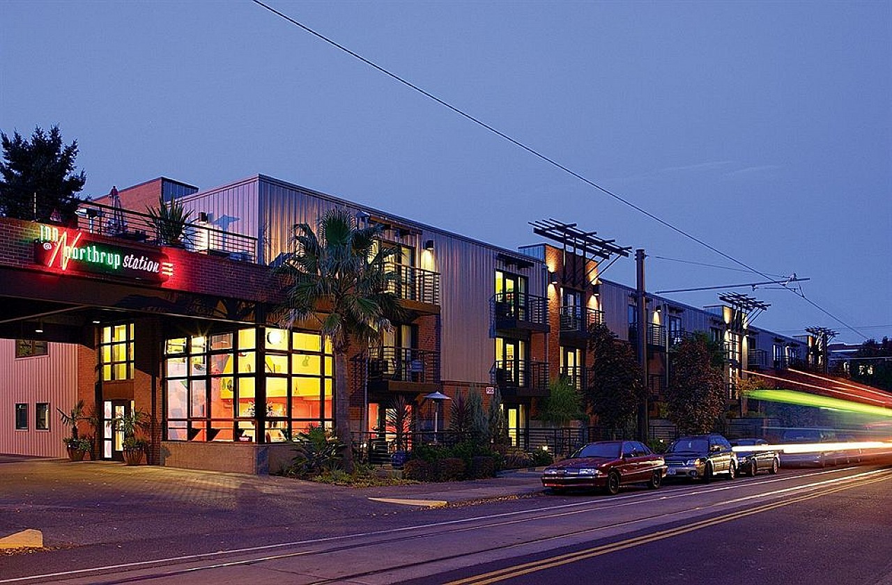 Originally built in the 1970s, this unique Portland hotel was rediscovered and transformed by Portland architect Steve Routon. The exterior reflects the true character and spirit of Northwest Portland. Acknowledging the energy of the neighborhood, suites at the Inn allow guests the opportunity to interact with the street scene below from a series of private decks and patios accented with soaring trellises.