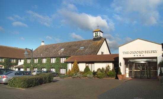 As you arrive at The Oxford Belfry, you will find 350 parking spaces of which four are reserved for blue badge holders, one of which is located close to the hotel's main entrance. There is also a turning circle located directly outside the main entrance for dropping off and picking up only. There is a level, paved route from the disabled parking spaces into the hotel where the main entrance has a revolving door and a power assisted side door.
