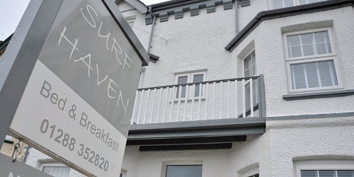 Surf Haven is a 1920’s mid-Terrace house, modernised with guest bedrooms on the ground, mezzanine and first floors. The property has recently been refurbished to offer four attractive and bright rooms maintaining many original features such as dado rails and ceiling cornices. All rooms have en-suite showers, (with one superior room offering a bath and shower facility), TVs, Tea and coffee making facilities, silent bar fridges and clock radios. Surf Haven is situated in a terrace road easily accessible from the A39 Atlantic Highway.