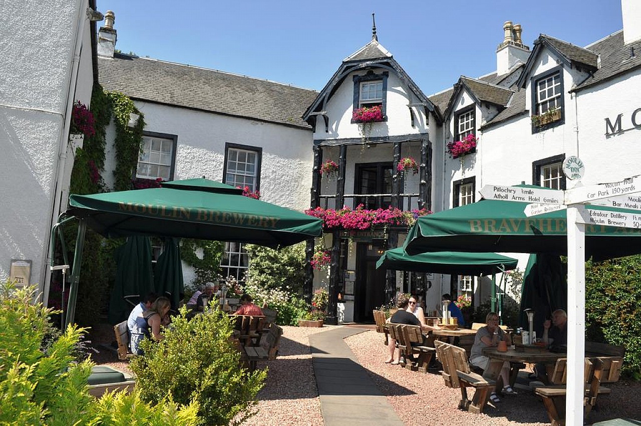 A delightful Haven of authentic Scottish highland hospitality since 1695 , The Moulin Hotel embraces a warm and welcoming world of peace, tranquillity and traditional Scottish hospitality. Perfectly sited in the village square of Moulin, an ancient Scottish waypoint, the hotel sits peacefully just 3/4 of a mile away from the bustling and perenially popular tourist town of Pitlochry.
