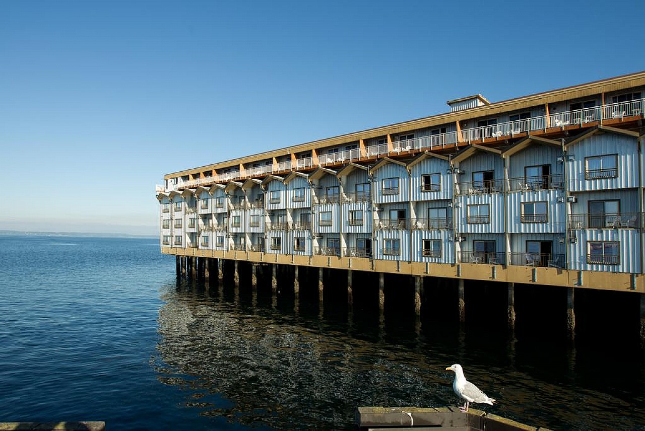 The luxury Edgewater Hotel with stunning water view, has a perfect location right on Pier 67, at the city's dynamic doorstep. The heart and soul of Seattle is only steps away. This is Seattle luxury lodging, with knotty-pine furniture, river-rock fireplaces and urban and wilderness landscapes just outside your hotel window.