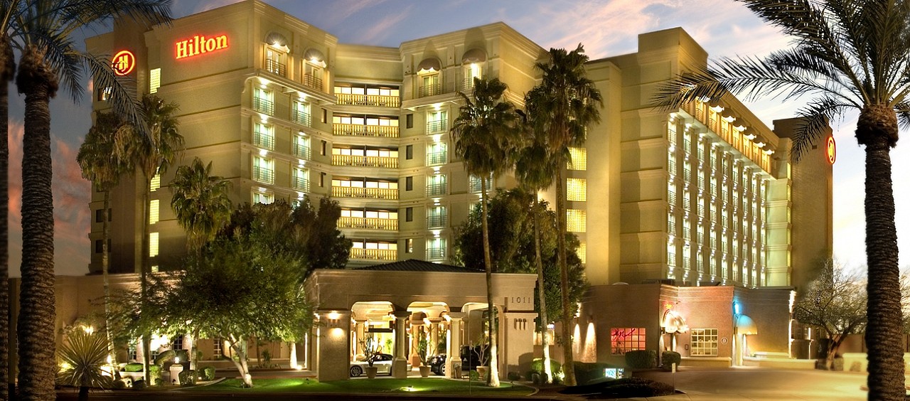 Gently enveloped by desert terrain, Hilton Phoenix/Mesa offers dining with a gateway to the Superstitions Mountains and walking distance to local restaurants. The modern-design hotel, located 15 minutes from Phoenix-Sky Harbor International Airport, features oversized rooms, a bar, a restaurant, a specialty coffee bar, room service, a business center, a fitness center, a heated pool, WiFi throughout and 25,000 sq. ft. of meeting space.