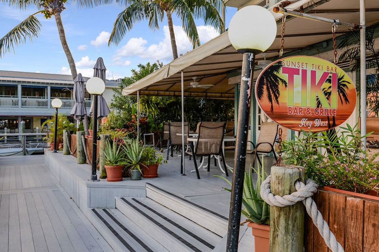Come to Sunset Tiki Bar & Grill, where the boardwalk ends and the sunsets begin. Savor our tropical cocktails, be entertained with live music, and bask in the best view of sunset in Key West. The poolside Sunset Tiki Bar is open from 10 AM - 10 PM every day of the week. We offer live music in the evening, for our own sunset celebration, and 2 happy hours daily. Rise and shine with our Morning Happy Hour from 10 AM - Noon and enjoy 2-4-1 Bloody Marys; or relax with the sunset, during our Evening Happy Hour from 5 - 7 PM, with 2-4-1 well drinks, domestic beer, and our famous Margaritas!
