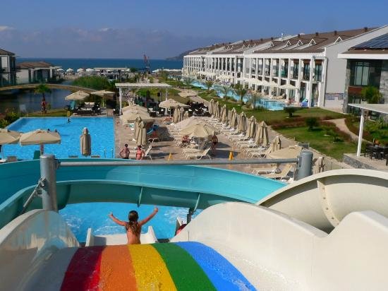 Read All ReviewsWe stayed here on our first trip to Turkey. We requested an adapted room and got one which was on the ground floor facing the countryside at the back of the hotel. The adapted room we had was fine. The beds were massive, quite high off the ground and firm, but this suited us. The only real adaptation appeared to be the addition of a rail near the toilet and the removal of the shower screen. The door widths are standard & you need to take care in the bathroom using the shower on full force will result in a flooded & slippery floor. There has been a stool added to the shower, but this failed twice during our stay and had to be repaired. The repairs were done immediately though. As far as accessibility is concerned, most areas are fully accessible. The paths around the hotel can be steep (particularly to our block and then reception/restaurant) and the bridge over the lagoon has to be avoided and the long route round taken. Staff was hard working and helpful throughout our stay.