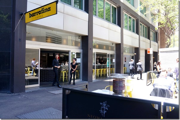 Well-priced, city tapas bar. ‘Come again?' We hear you exclaim. Barrafina Tapas Bar perched on the corner of Bligh and Bent Street in Sydney CBD is a well-kept secret amongst corporate lunch crowds. Dishing out a mix of Spanish and Mediterranean cuisine with subtle influences from the East, the bright, roomy restaurant offers pintxos, tapas and an impressive charcuterie selection.