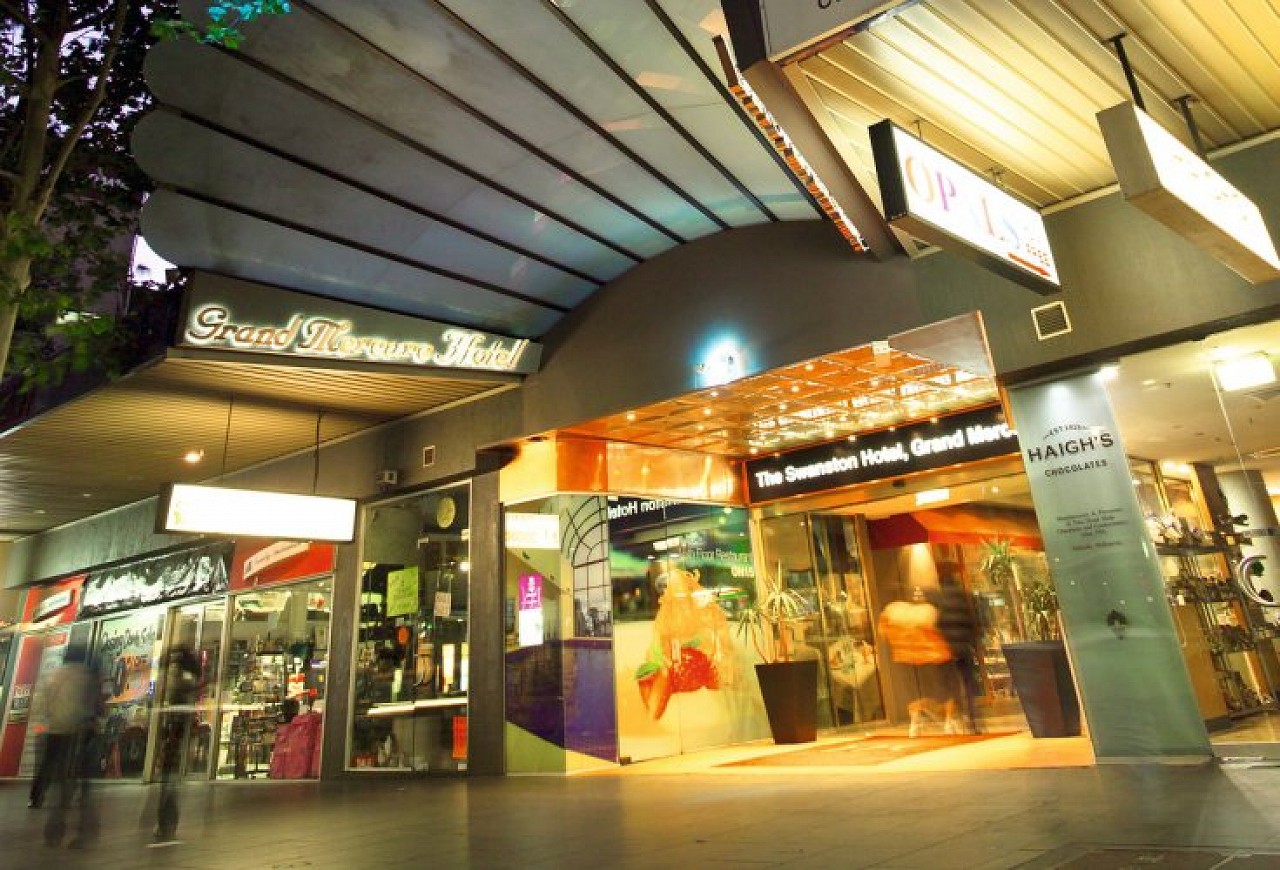 Melbourne's most centrally located accommodation, The Swanston Hotel, Grand Mercure is surrounded by the most popular shopping and business precincts, theatres, galleries, bars and restaurants. Located close to Bourke Street Mall and Federation Square and offering 200 modern, spacious rooms, The Swanston Hotel, Grand Mercure features superior service, along with a well equipped gym, indoor swimming pool and valet parking, plus three unique dining options including 24 hour room service.