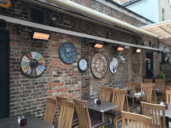 Outside allows for lunch in the sun, a pre-dinner drinks area, or after dinner coffee chill-out zone. The seating arrangements, parasols and outside heated lamps make the area comfortable all year round.