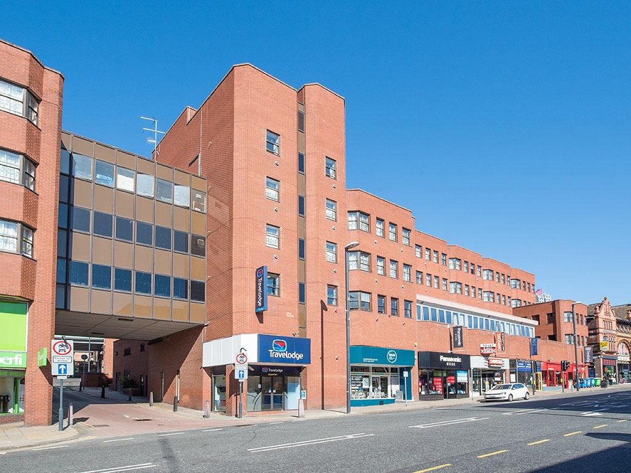 From all major motorway links head into Leeds City Centre, pick up signs for City Centre loop road. Leave the city centre loop road at J8, bear right onto Merrion Street, turn right at bottom of Merrion St and the Travelodge is 100m on the right hand side. The Travelodge is situated in front of Leeds Grand Theatre.