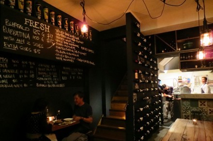 Giving new meaning to the word "small bar", the twin-levelled Buffalo Dining Club is crammed with tiny tables and stools, and this is without any customers. No bookings are taken and it is a requirement that the entire dining party is present before being seated. First to arrive, I was greeted at the door by the handsome Mantus (his real name is a secret) and ushered to the so-called ‘bar' (a tiny two-seater counter overlooking a liliputian kitchen with a little bench where the boys prepare drinks).