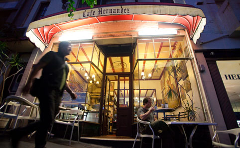 Café Hernandez is a Sydney institution. Located in the inner-city suburb of Potts Point, close to the nightlife of Kings Cross, this cafe lines the stomachs of patrons, 24-hours a day, seven days a week. The brainchild of a Spanish coffee quality controller, Cafe Hernandez is known for its superb fresh roasted coffee and its hot chocolate, which is so thick you can practically stand a spoon up in it. Café Hernandez is a café that never closes. Open 24 hours, we offer a large range of cakes and café food. We roast our own coffee in house. Quirky 24-hour cafe and roastery, serving gourmet coffee and Spanish-style bites since 1972.