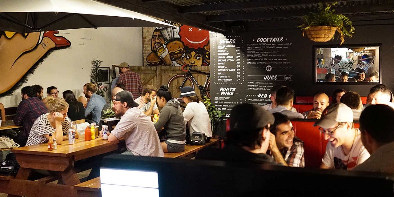 Who’s up for an unapologetic burger? Throw in root beer, peanut butter and jam shakes and a dartboard out the back, then slam us with half price burgers on Tuesday and we’re sold. While the exposed brick walls, Hollywood lights and cocktails in mason jars are a tad tired, the cheeky cheap deals and low key vibe are a winning combination in a location that’s screaming out for some action.