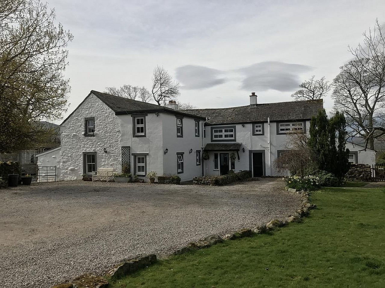 We have a parking area at the front of our property that can easily accommodate up to 9 vehicles. The parking area surface is loose stone and therefore uneven. There is one step down onto an uneven paved area in front of our front door and there is one step over the threshold. Outside lights are fitted on the front of our house including two that operate on sensors but the further away from the house then the darker the parking area is. The front door entrance is 186cm high by 82cm wide with a step measuring 6cm. We are happy to help with luggage.