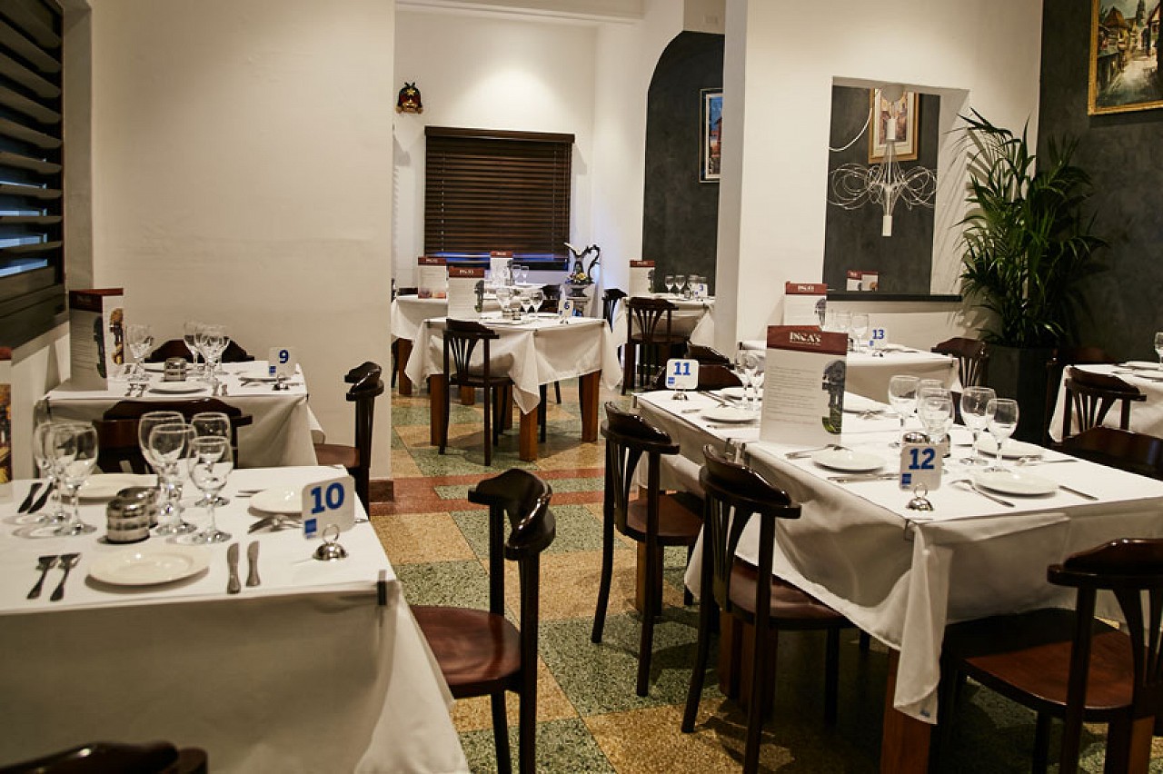 Walk into this cosy and mysterious little venue, and start by enjoying some sangria. Take a while to peruse the menu of authentic cuisine – the only thing missing at Inca's is Inca Kola, I am told. The rest of the menu contains specialties like ceviche and an escabeche of grilled fish from the wood-fired grill. Goat stew is the house speciality for carnivores while the creamy chick peas will win the hearts of vegetarians and regulars alike. Many of the house dishes feature sauces pricked with spices like chilli, ginger, fresh coriander and paprika, so be prepared for something a little out of the ordinary. There are good seafood and vegetarian options and unlike many metro eateries, you can take a good bottle of wine in with you.