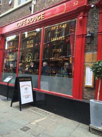 Café Rouge York is located on the historic street of Low Petergate, with a wealth of history and culture around the bistro. Running throughout the restaurant are stunning mosaic floors, which lead you through to stained wooden floors.