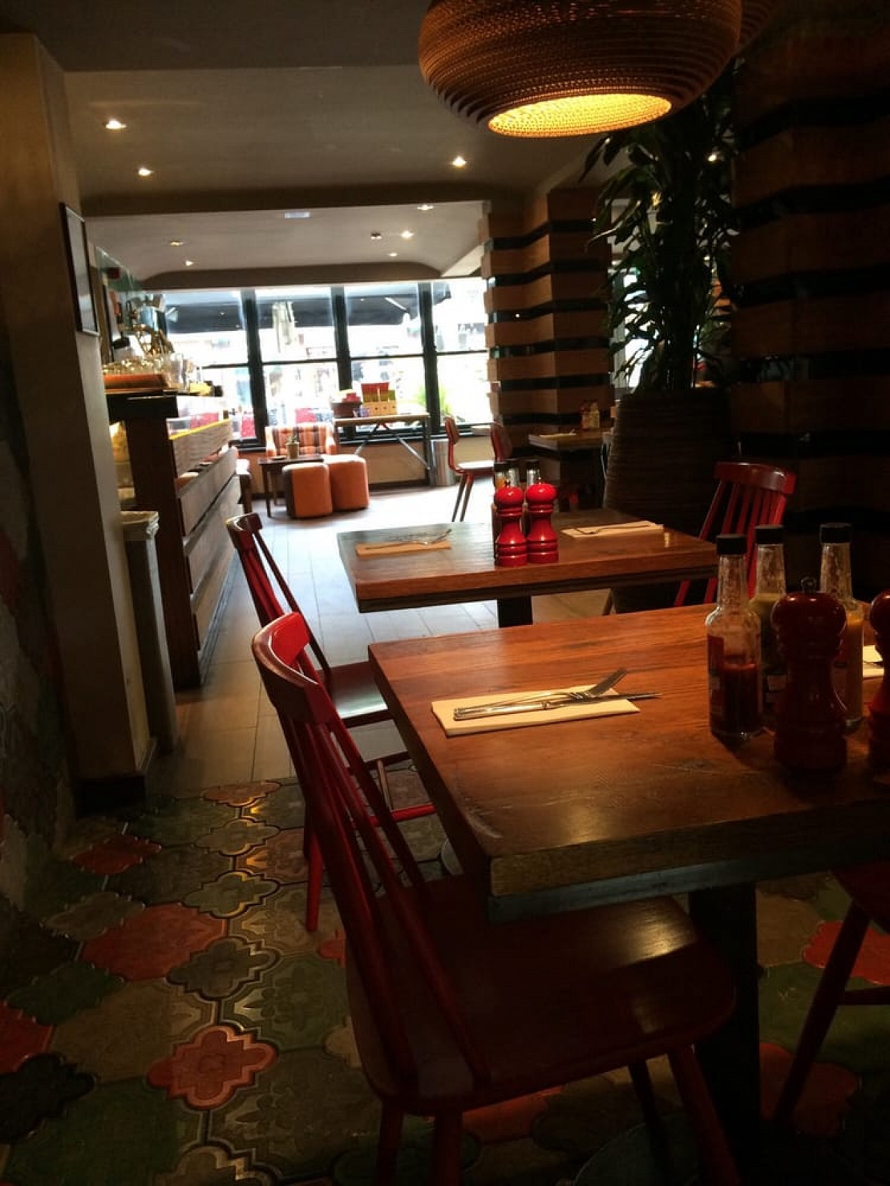 - The nearest table is 2m (6ft 7in) from the main entrance.