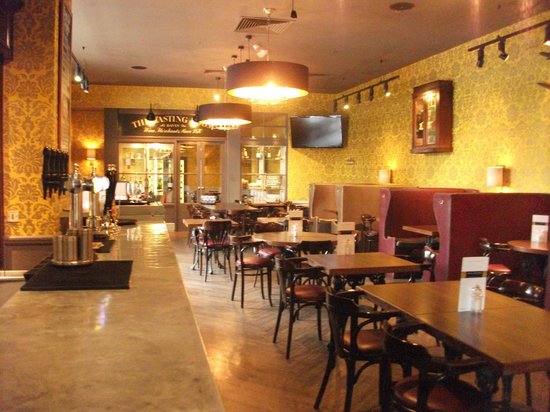 Elegant riverside wine bar with booth seating, British bistro and grill fare, supper club menu deal.
