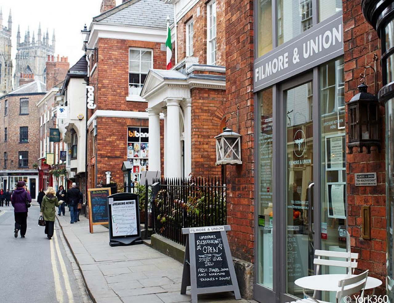 Relax and take in the calming atmosphere in our stylish York restaurant. Housed in one of York’s oldest buildings, our elegant restaurant and cocktail bar offers Californian-style, healthy, naturally wholesome dishes and gluten free cakes with a neighbourhood dining vibe day and night. Enjoy free wifi and the daily papers on us whilst overlooking the famous Minster cathedral and watching our chefs make your food right in front of you in our very own open kitchen! We’re dog friendly too – so bring them along on your next visit!